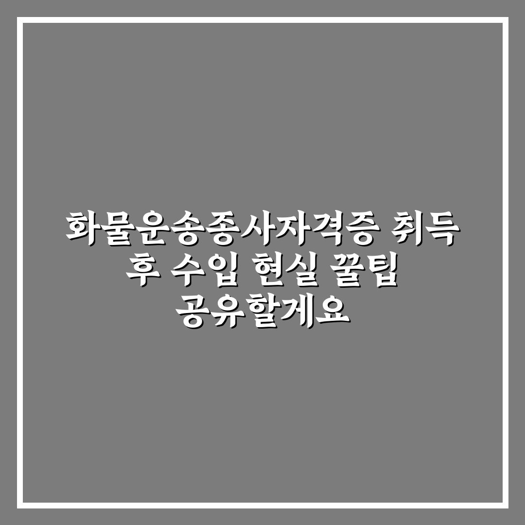 화물운송종사자격증 취득 후 수입 현실 꿀팁 공유할게요 2026년 04월 01일 by 자격증 대장 화물운송종사자격증 취득 후 실제 수입과 꿀팁을 공개합니다. 현실적인 정보로 성공적인 운송업 시작하세요!