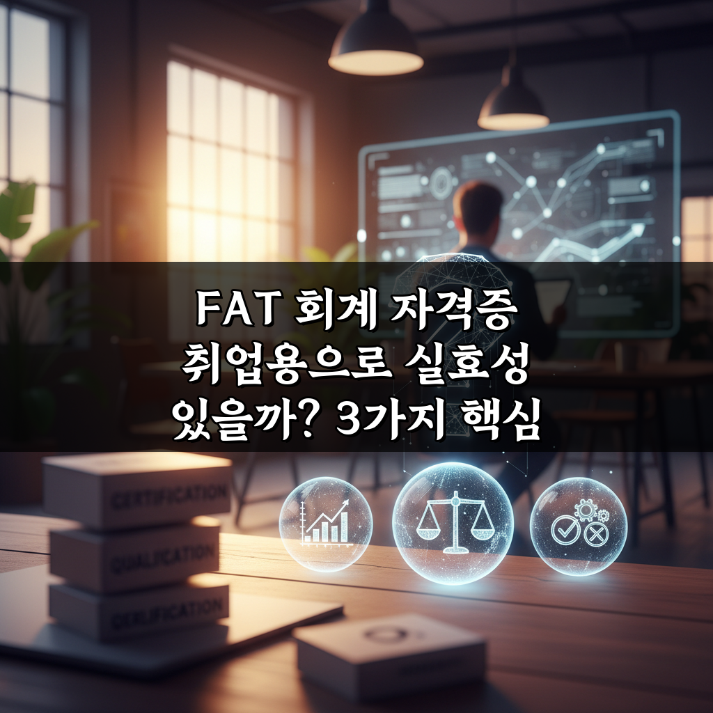 FAT 회계 자격증, 취업용으로 정말 실효성이 있을까요? 실무 활용도와 취업 시장 가치를 3가지 핵심 분석으로 심층 탐구합니다. 현명한 선택을 위한 현실적인 가이드를 지금 확인하세요.